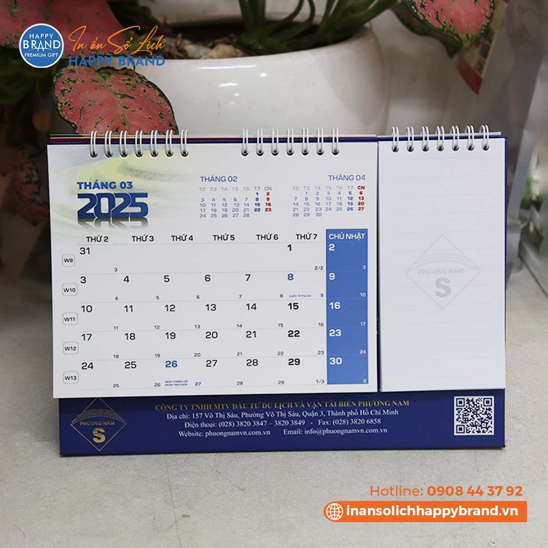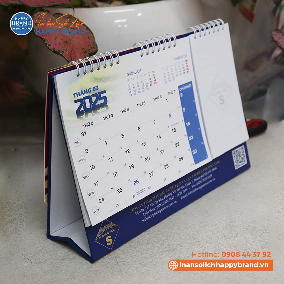 Tư vấn thiết kế lịch tết: Khi đặt in lịch quý khách sẽ được chúng tôi tư vấn về quy cách chất liêu cho từng loại lịch sao cho phù hợp với số lượng in và mục đích sử dụng. Từ đó chúng tôi sẽ lên ý tưởng cho mẫu lịch của quý khách, chuyên viên của chúng tôi sẽ tư vấn để quý khách có được mẫu lịch đẹp và phù hợp nhất. Ngoài ra bạn có thể chọn mẫu lịch tết phù hợp với lĩnh vực ngành nghề kinh doanh trong catalogue mẫu lịch tết của chúng tôi. Báo giá in lịch tết: Sau khi quý khách được tư vấn và lựa chọn được mẫu lịch tết chúng tôi sẽ lên báo giá chi tiết đến quý khách với giá in lịch rẻ nhất theo yêu cầu. Thiết kế Lịch tết: Chúng tôi sẽ thiết kế lịch theo ý tưởng và yêu cầu khi quý khách đặt in lịch tại Happy Brand. Mẫu Lịch tết sẽ được thiết kế mẫu để quý khách xem và chỉnh sửa theo yêu cầu đến khi quý khách thực sự hài lòng. In Lịch tết: Lịch tết được in bằng máy in offset đảm bảo màu sắc và chất lượng lịch. Giấy lịch tết thường được in là giấy Couch từ 300gms đảm bảo chất lượng độ dày cũng như hình ảnh của tờ lịch. Gia công: Lịch tết được gia công theo từng loại lịch như lịch lò xo, lịch để bàn, lịch sổ, lịch quyển... Giao hàng:Chúng tôi sẽ giao hàng miễn phí tận nơi cho tất cả các khách trong quận nội thành Hồ Chí Minh. Đối với khách ở xa chúng tôi sẽ gửi xe khách, khách hàng sẽ trả phí trực tiếp cho nhà xe.